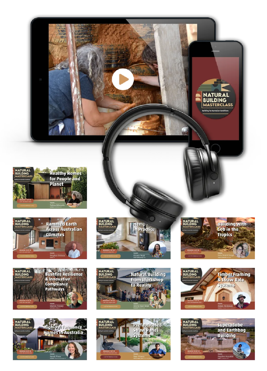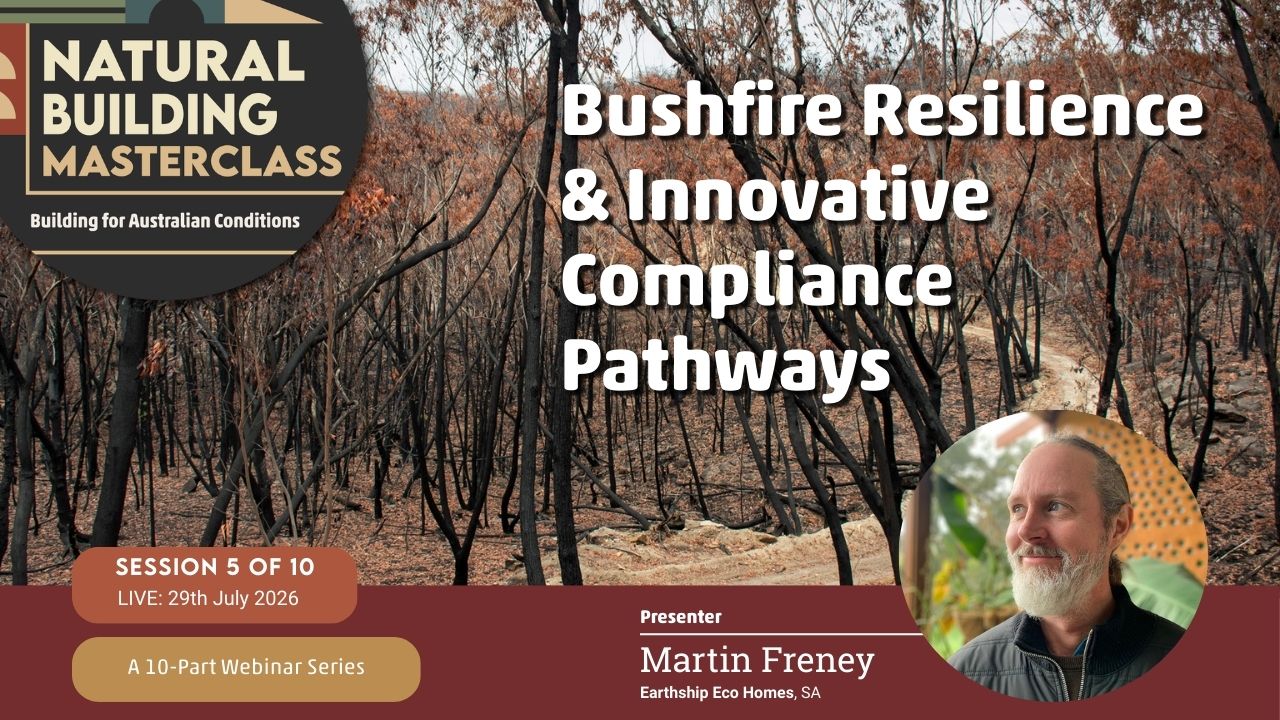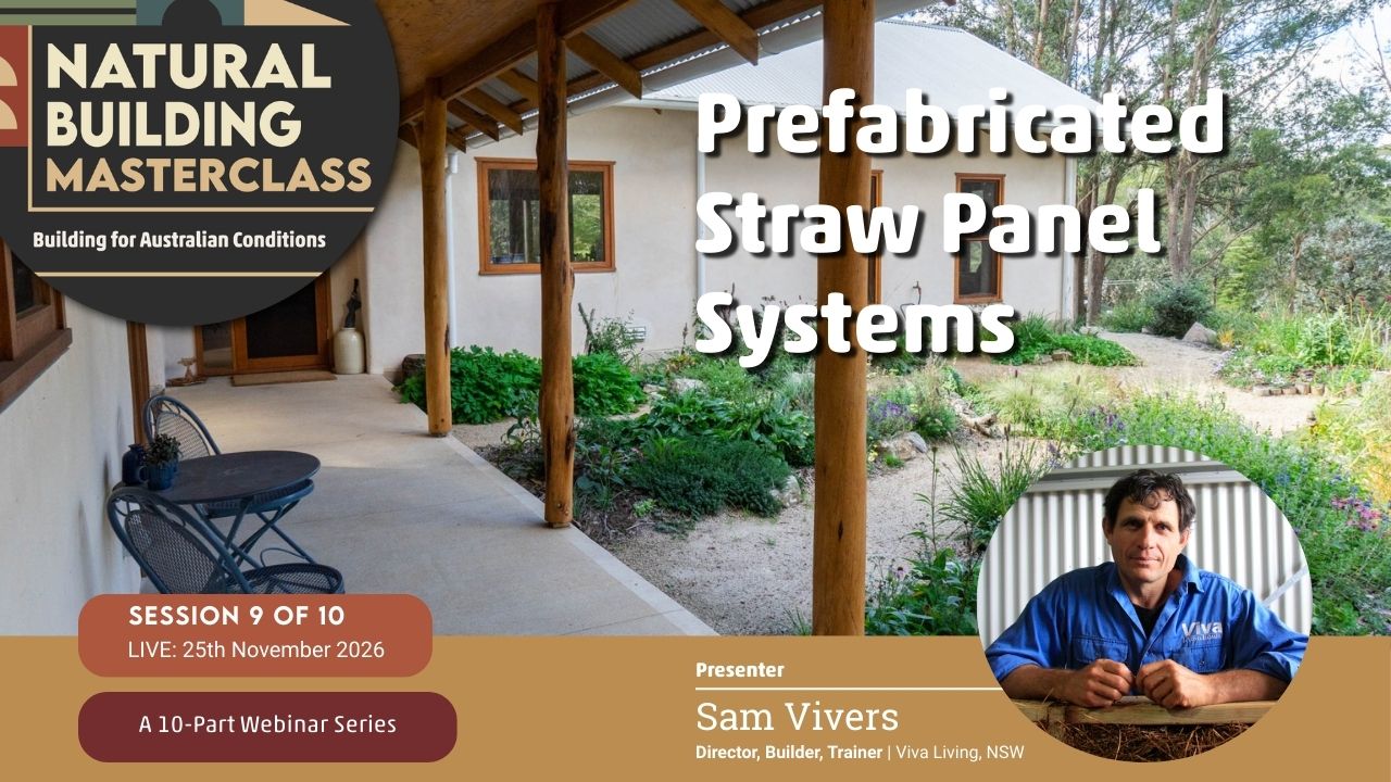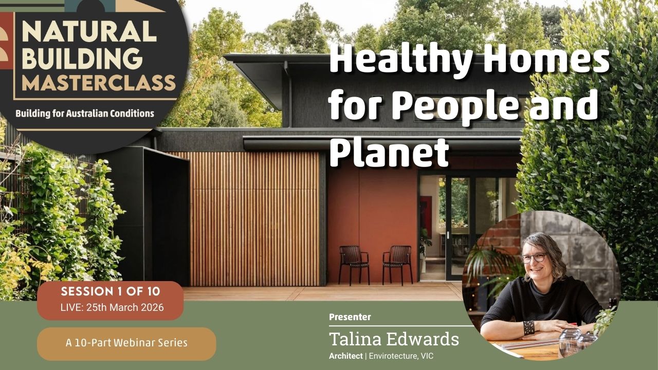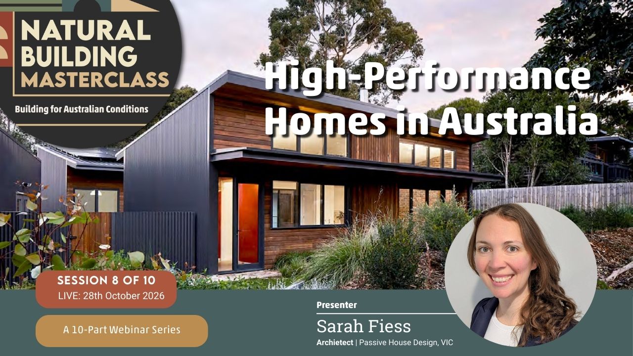 The Natural Building Masterclass: Building for Australian Conditions — is a monthly online learning series bringing together experienced Australian natural builders, designers, and practitioners.
