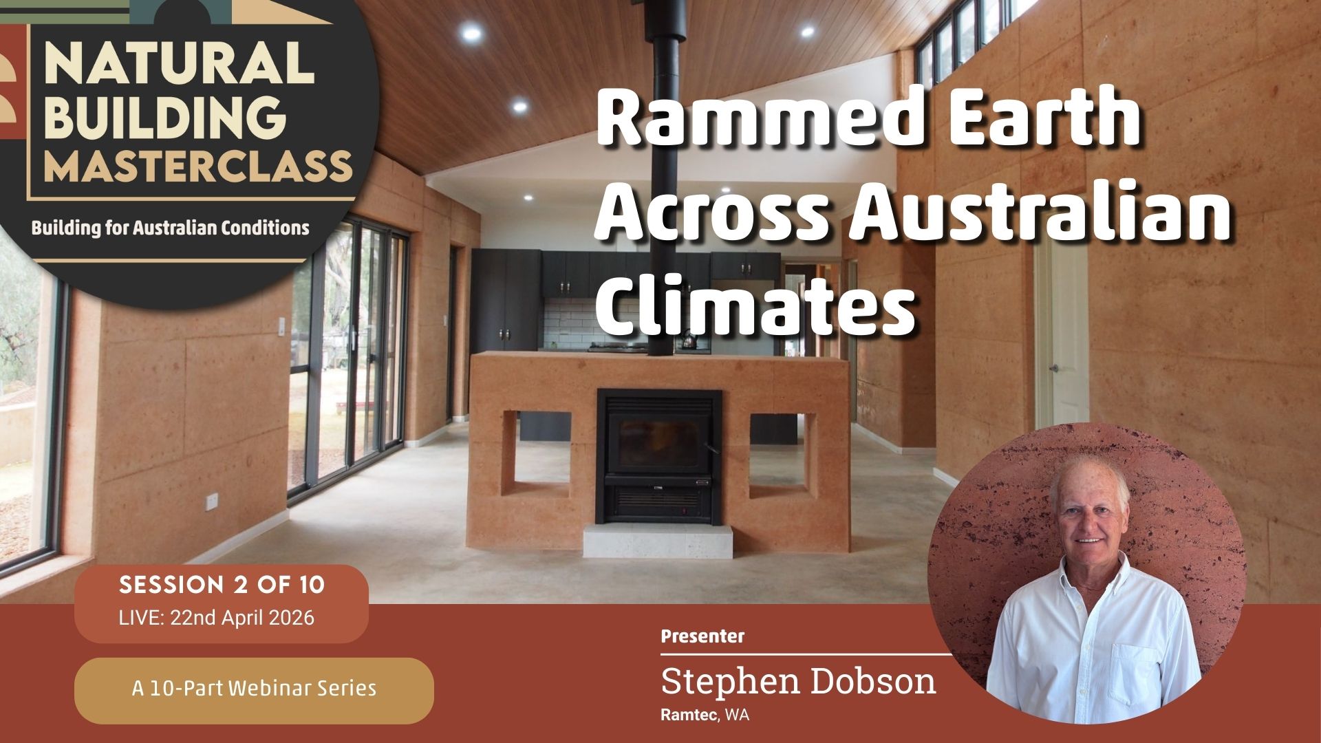 Stephen brings decades of experience building rammed earth structures across Western Australia. This session will examine where rammed earth performs best, thermal mass considerations, material selection, and long-term durability and maintenance.